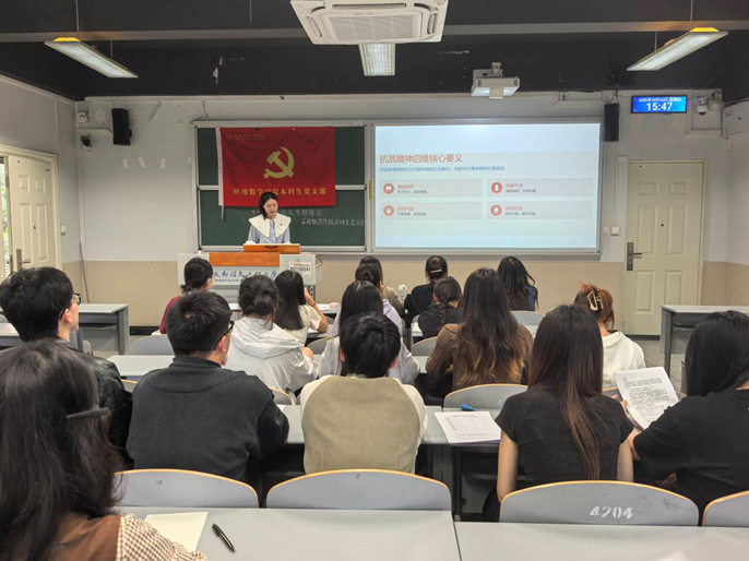 会议第一项,专题学习以 “赓续抗战精神 青春挺膺担当” 为主题,曾敏同志从五方面展开:回顾十四年抗战历史,强调全民族 “一致对外” 的团结底色;提炼 “爱国、气节、英雄、信念” 的抗战精神核心,点明其对青年的指引作用;结合 “躺平” 等现象,引导党员思考个人与民族命运的关联;通过校友扎根乡村等案例,展现实干爱国的榜样力量;倡议党员同志以攻克硬核课程等行动践行抗战精神。