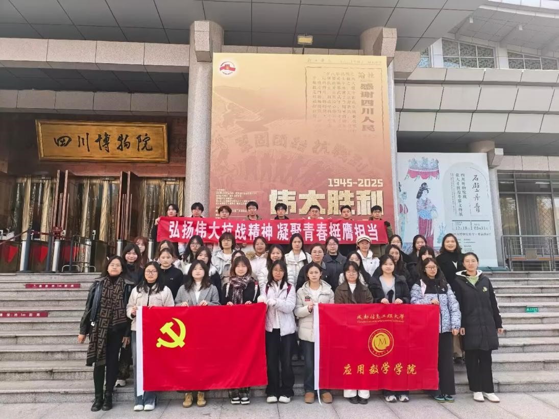 党委组织学生党员赴四川博物院开展主题为“弘扬伟大抗战精神 凝聚青春挺膺担当”的主题党日活动:近40名学生党员、入党积极分子在学生党支部书记曾凤娇、唐智慧老师带领下参观“伟大胜利 川渝贡献——纪念中国人民抗日战争暨世界反法西斯战争胜利80周年主题展”。