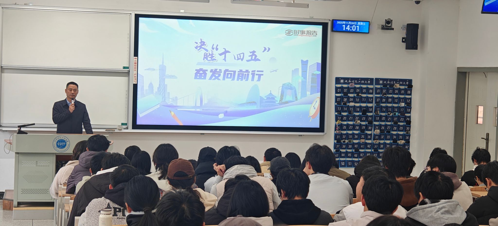 本次课程以“决胜‘十四五' 奋发向前行”为主题。陈权亮围绕国家“十四五”规划的核心要义与战略部署,结合当前国内外发展形势,深入浅出地阐述了规划实施的重要意义和取得的阶段性成就。他着重分析了新发展阶段对青年学子,特别是对计算机领域人才提出的新要求与新机遇,鼓励同学们要胸怀“国之大者”,将个人理想融入国家发展大局。